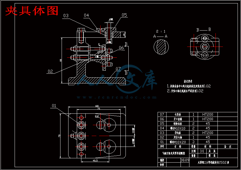 3.繪制夾具裝配圖見附表一(13)